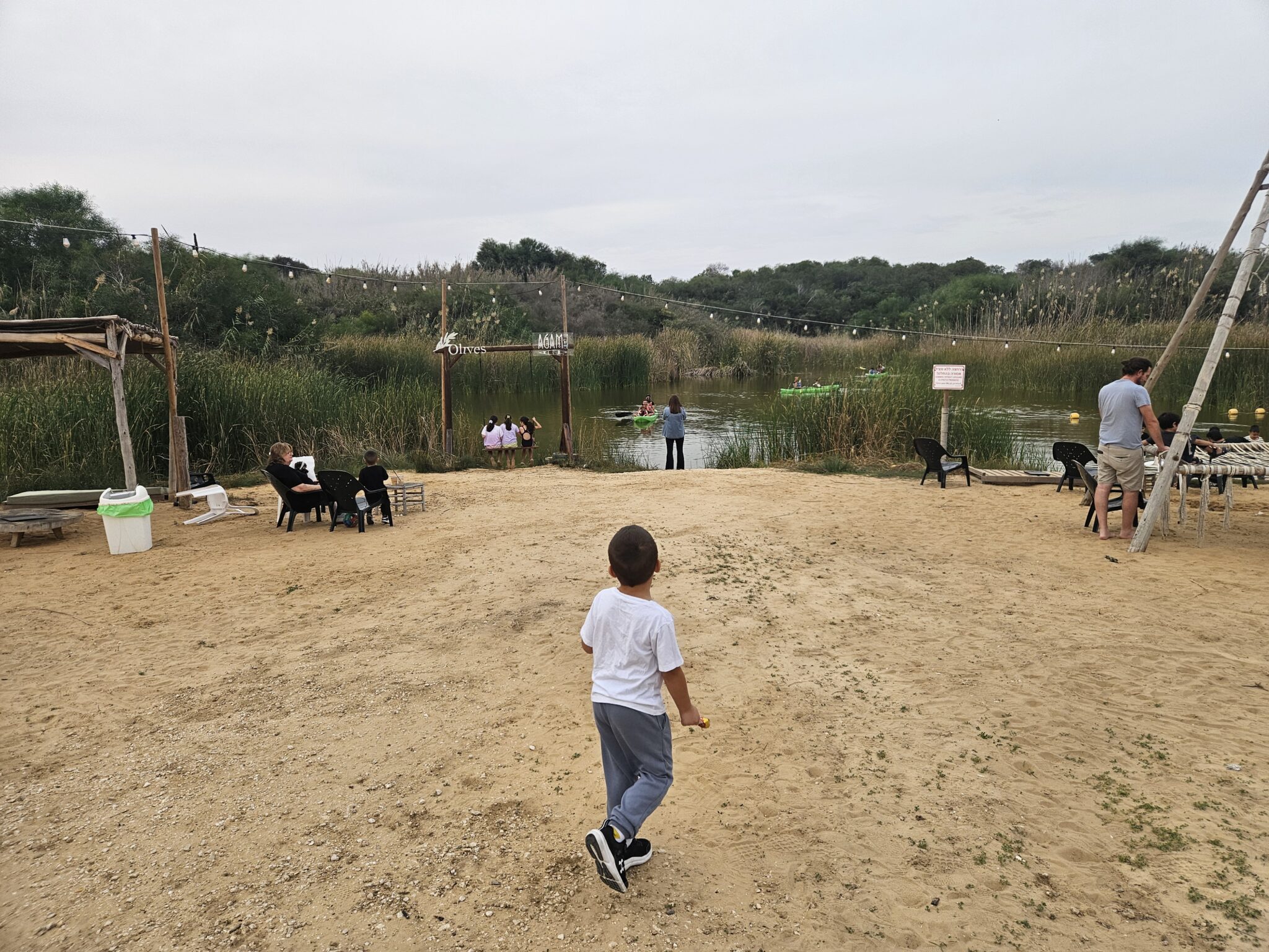 💦 המים נראים מזמינים וכחולים, אבל הקרקעית בוצית והרחצה אסורה ומסוכנת. הבילוי הוא ליד המים או על המים, לא בתוכם.