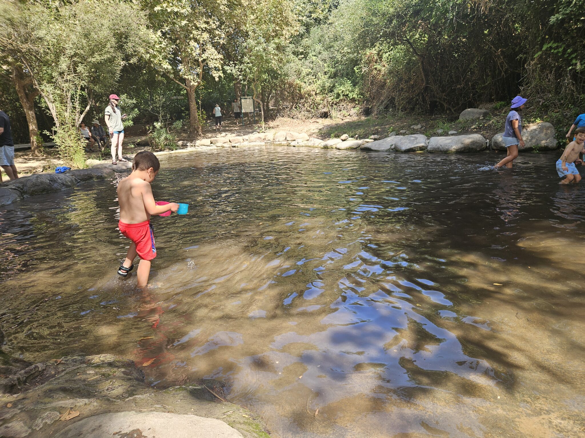 במסלול המעגלי הנגיש עוברים דרך בריכה מרשימה ומפל שזורם לתוכה. בימים החמים מומלץ וכדאי להיכנס ולהשתכשך בבריכה (מים מאוד רדודים), אם כי המים מאוד קרים. אפשר להמשיך מהבריכה למסלולון קצר בנחל שניר, אבל בשביל זה תצטרכו להביא נעליים שניתן ללכת איתם במים, ובגדי החלפה. וזה החלק שפחות כדאי ללכת עם מנשא (לא ממש בטיחותי ומחליק), אלא לקחת ילדים יציבים בהליכה לעוד אתגר קצר.