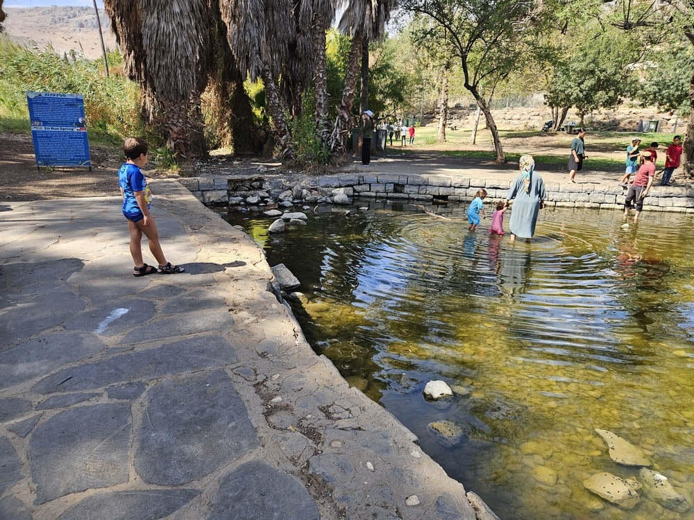 לעין נון, הממוקם בכניסה למושבה מגדל סמוך לכנרת, כדאי להגיע עם ציפיות מותאמות. מדובר באתר טבע חינמי ונעים לעצירה על הדרך, המציע מדשאות ובריכת מים רדודה. זוהי פינת טבע אידיאלית להפסקה קלה בשטח מגודר וטבעי. קיימת הצללה חלקית, תלוי בשעות של היום ובעומס המטיילים. הבריכה מוקפת מדשאה רחבה, והיא נוחה מאוד לשכשוך עבור קטנטנים, ובשל כך המקום אהוב ומומלץ על ידי משפחות. עם זאת, חשוב לציין כי במקום מוצב שילוט רשמי האוסר על הרחצה (לרוב בשל היעדר שירותי הצלה), ובימים עמוסים במטיילים המים הטבעיים עשויים להיות עכורים. ההחלטה האם לאפשר לילדים להיכנס למים נתונה לחלוטין לשיקול דעתכם. אם תחליטו לאפשר שכשוך, כדאי מאוד להביא מראש סט בגדי החלפה, מגבות ונעלי הליכה במים לילדים.